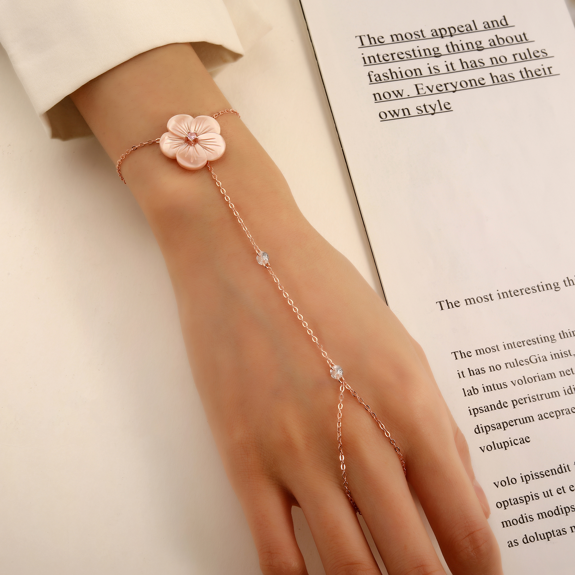 צמיד גאדי פרח ורוד +אבן